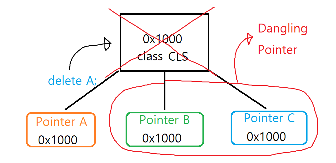 남아있는 포인터 변수들은 Dangling Pointer가 되어 버린다.