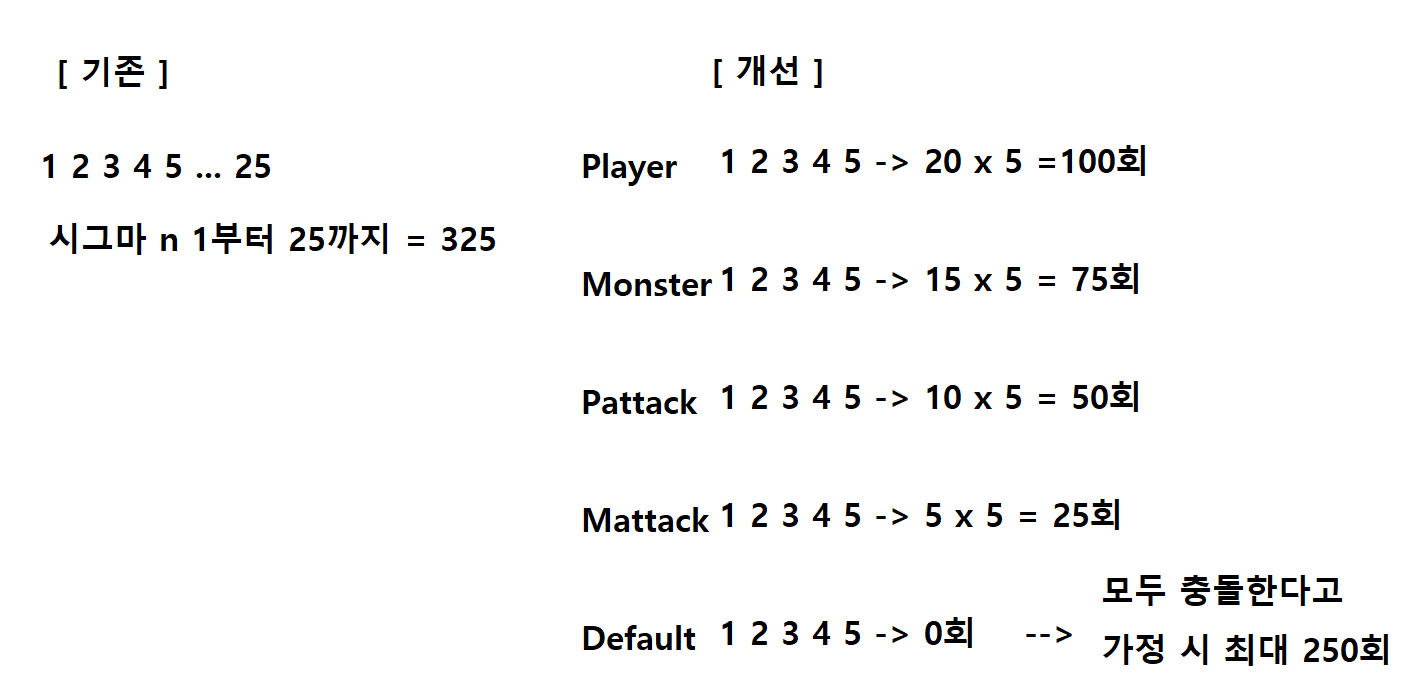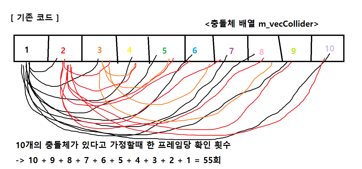 - 이 클래스에서는 매 프레임마다 모든 충돌체를 배열에 모아서 충돌처리를 진행한다. 매 프레임마다 새로 채우고, 매 프레임마다 전부 비운다.