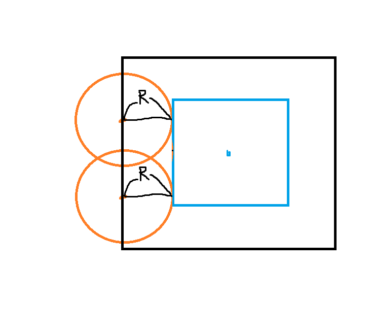 1-2. 위의 범위 안에 있다면, 사각형을 반지름만큼 확장하여 이 넓이의 사각형 안에 있는지를 판단한다.
