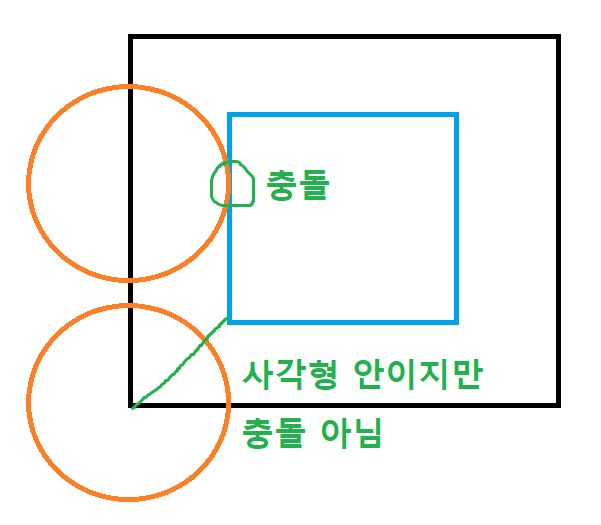 - 사각형과 원의 충돌 판정이 의외로 복잡하다.