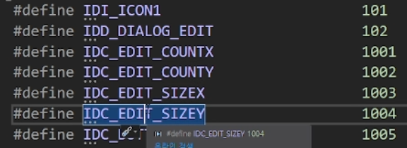 --- 다이얼로그를 만든 뒤 빌드를 해보면 resource.h 헤더에 이렇게 우리가 만든 오브젝트 번호가 정의되어 있는 것을 확인할 수 있다.