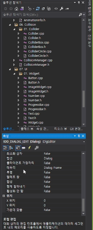 이 창에서 값을 계속 바꿔주어야 하므로 드래그해서 솔루션 탐색기와 같이 띄워놓는다