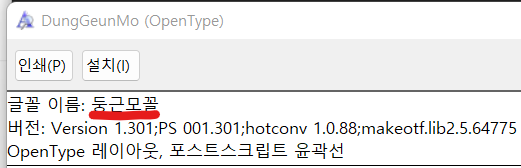 2. 폰트 파일을 열면 나오는 '폰트 이름'