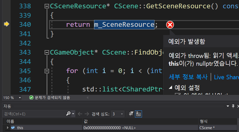 - Scene에 nullptr이 들어가있다.