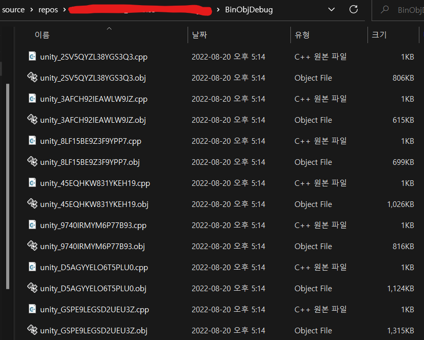 기능을 활성화 한 뒤 빌드하면, 이런 파일들이 출력 창에 뜨는 것을 볼 수가 있다.