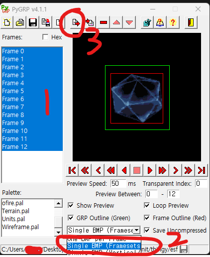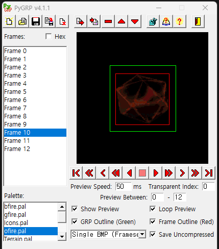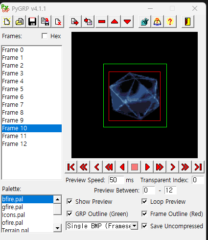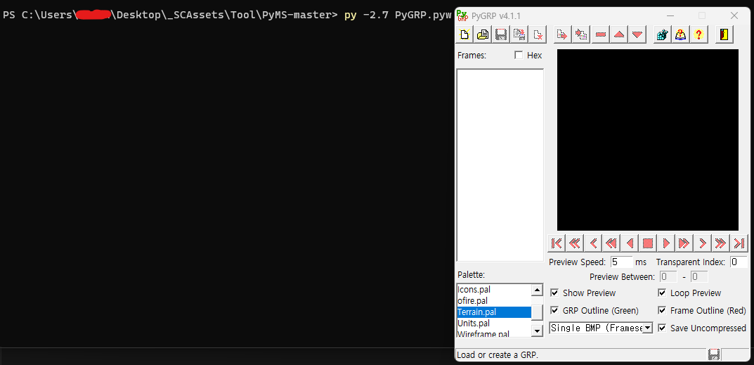 - PyMS를 설치하고 PyGRP.pyw를 실행해서 .grp 파일을 .bmp 파일로 변환