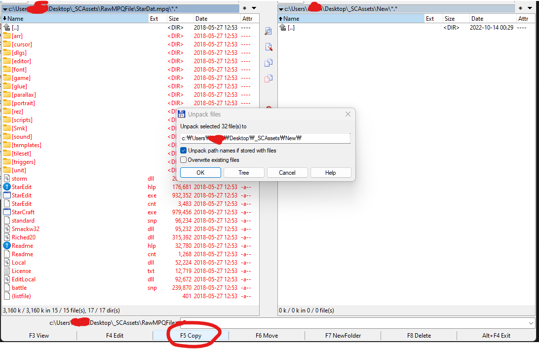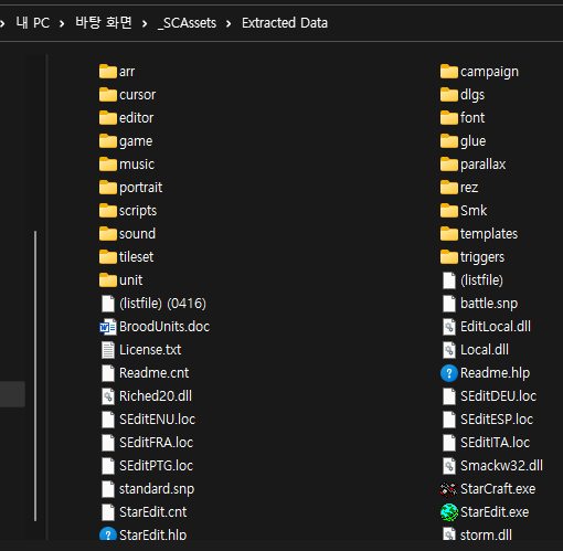 - 같은 방법으로 StarDat.mpq, BroodWar.mpq, BrooDat.mpq 파일 모두 압축풀어주면 된다.