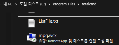 - mpq.wcx 파일과 ListFile.txt를 Total Commander 설치경로에 옮겨 준다.
