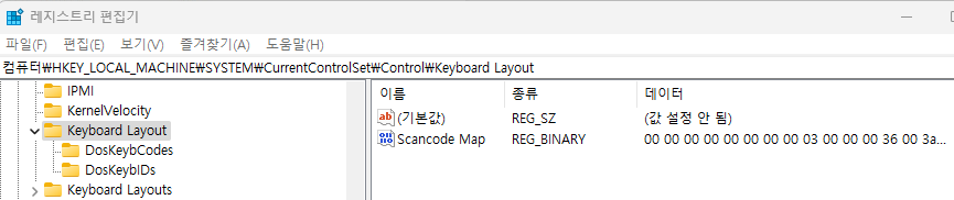 3. 우측 창 우클릭 → 새로 만들기 → 이진값 → 이름을 'Scancode Map'으로 변경