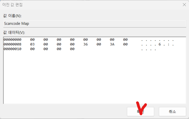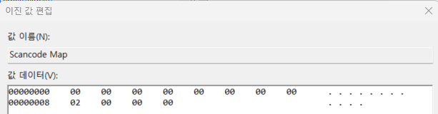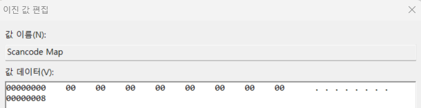 만약 Caps Lock → RShift, RShift → Caps Lock 처럼 두 개의 키를 서로 변경할 경우(스왑) 2개를 변경하는 것이므로 '03'을 입력해 주면 된다.