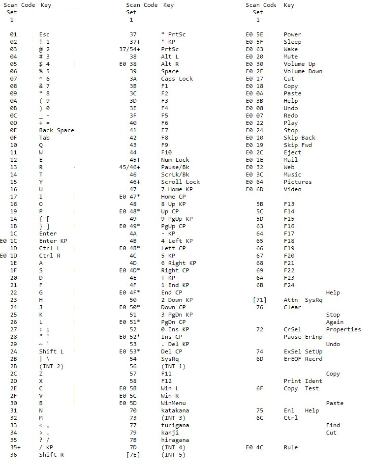 뒤에 'KP'가 붙어있는 키는 '키패드(넘버패드)'에 있는 버튼이며, 'CP'가 붙어있는 키는 '컨트롤패드'에 달려있는 키라고 한다.(컨트롤패드가 뭔지는 정확히 잘 모르겠음)