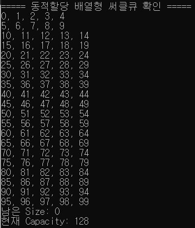 std::cout << "\n===== 동적할당 배열형 써클큐 확인 =====" << std::endl;