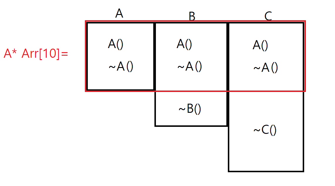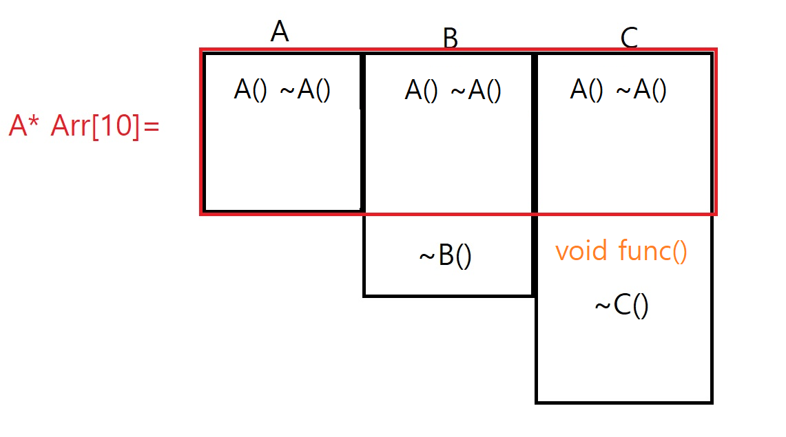 * 이 '가상함수'와 '재정의'라는 기능을 이용하여, 우리는 Parent* 타입의 배열 그릇 바깥에 있는 소멸자 ~B()와 ~C()를 불러올 수 있다.