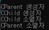 ▲ CChild의 소멸자가 호출되지 않던 것이