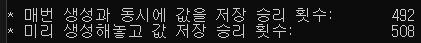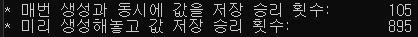 std::cout << "* 미리 생성해놓고 값 저장 승리 횟수:\t\t" << BWin << std::endl;