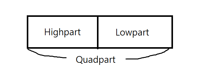 - DWORD LowPart = Unsigned int (4byte)